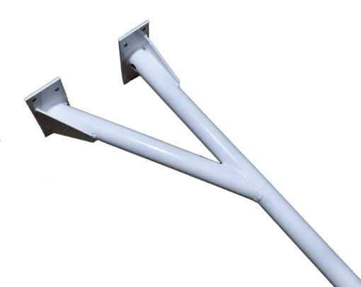 You may also be interested in our Fence Guard Many times, customers at High Security areas may be using a High Security fence. These are excellent deterrents and have qualities normal fences do not have, but their high-tensile design may transmit sounds and frequencies that could effect performance of cameras and the analytics being used. Also, these fence systems are usually more tightly woven than many types of fencing, so cameras and poles need to be set apart from the fence structure. Winds can easily catch these fence structures and vibrate any fence pole attached. For this reason, Strong Poles recommends that our SteadyMax poles be set back several feet from the fence line. So The Reacher attachment is designed to reach out 5 feet from the pole, to reach beyond the fence or property line – but not be a part of any vibrations and wind induced movement that the fence may incur. This is yet another way that we can guarantee that your cameras be as rock solid and steady as they can be. The Reacher Attachment is attached with two large 5/8” U-Bolts and pole clamps that lock to the pole and will not move. The attachment also uses strong gussets at the base to insure that the attachment does not sway or have any movement. The PTZ Mount is a 1-1/2” NPT male connection (also comes with a joiner with set screws to allow male to male attachment), and we also have optional reducers to accommodate any PTZ’s that may have 1” connections (GE, etc.). The pipe that The Reacher is made of, is large enough to accommodate wiring and connectors, effectively providing a junction box type of cavity. This attachment can also be ordered with a pole that has an additional handhole behind it (some may be in stock already). Maximum weight load of 40 pounds.