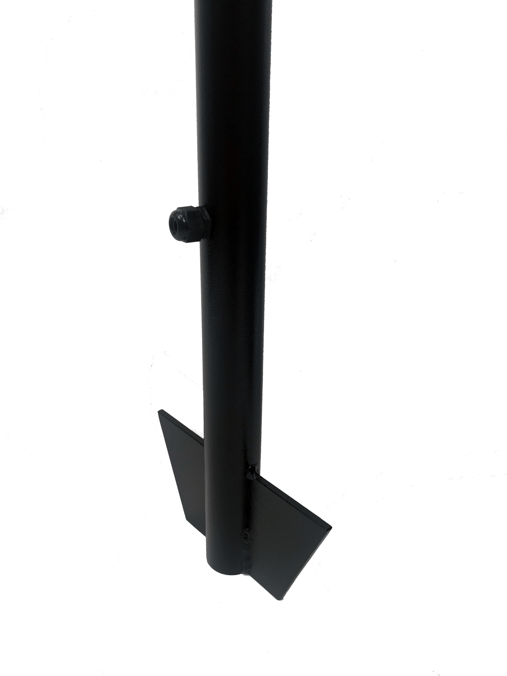 The direct-burial keypad pedestal can be buried at 2 feet and have 42” above ground height, or can be buried deeper for shorter heights. Includes anti-turn paddles, and a below ground wire gland that can handle numerous wires (example: up to 3 or 4 CAT cables). These keypad and reader stands are made of 1.5 inch aluminum tubing powder coated in a black hammered finish.