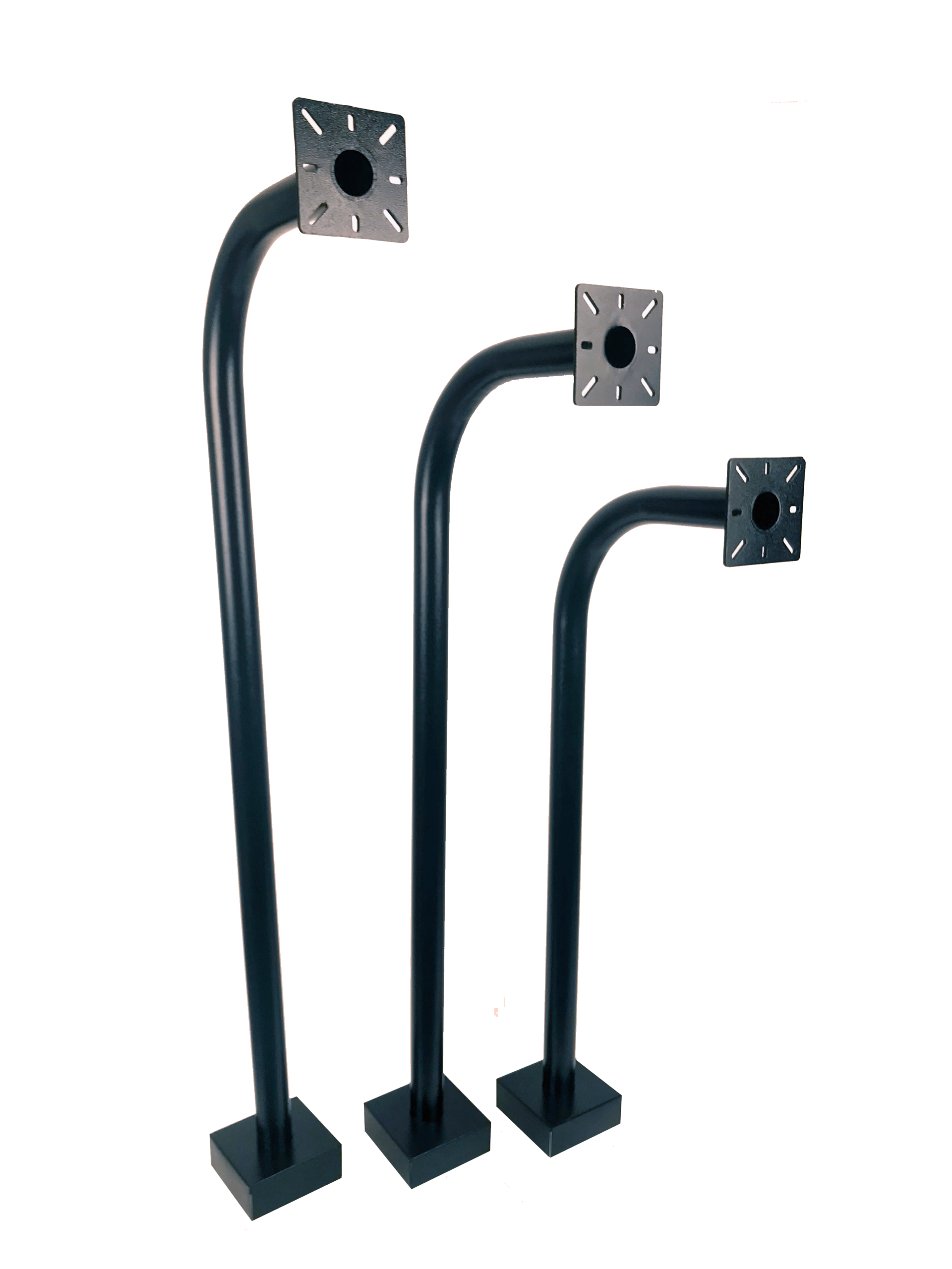 Our Gooseneck Pedestals Come in Curb Mount, Pad Mount and Direct Bury Gooseneck Models – Shafts are made from 1-1/2’ aluminum pipe (1.9” OD / .145 wall thickness) All heights are to center of faceplate.
